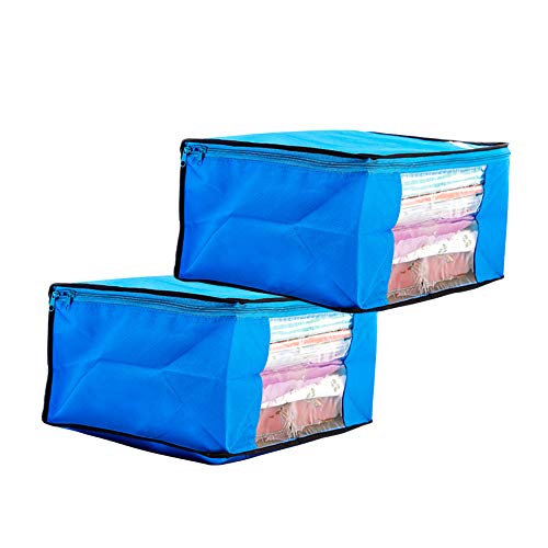 Amazon Brand - Solimo 2 Piece Non Woven Fabric Saree Cover Set with Transparent Window, Extra Large, Blue