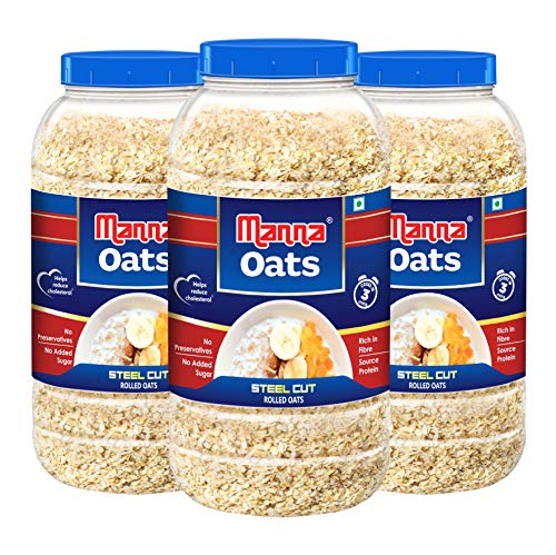 Manna Oats (1kg x 3 Jars) - Gluten Free Steel Cut Rolled Oats. High in Fibre & Protein. Helps Maintain Cholesterol. Good for Diabetics. 100% Natural is available on Amazon at best discounted online price. MRP of this product is ₹ 690.0. You can buy this product at discounted rate ₹ 380.0.