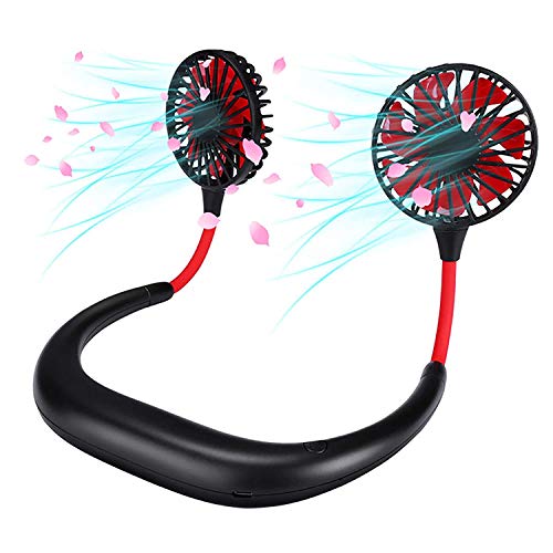 • 【DOUAL HEAD FAN, 360° ROTATION, FOLDING】Features double fan heads design, the fans are 360°flexible rotate to adjust the best wind direction you need. Wear it on your neck, sit it on the table as a desk fan. Absolutely free your hands while you are working or playing.