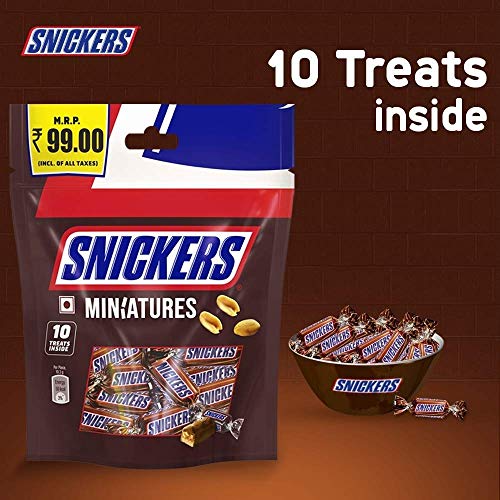 Snickers Miniatures Peanut Filled Chocolates - 100g (Pack of 4) is available on Amazon at best discounted online price. MRP of this product is ₹ 396.0. You can buy this product at discounted rate ₹ 198.0.