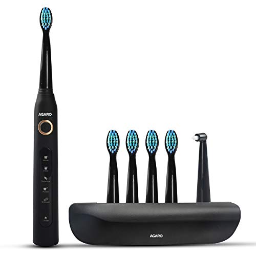 Agaro Cosmic Plus Sonic Electric Tooth Brush For Adults With 5 Modes, 5 Brush Heads, 1 Interdental Head, Carry Case & Rechargeable With 4 Hours Charge Lasting Up To 25 Days, Power Toothbrush, (Black)