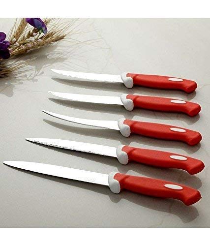 Bluewhale Multipurpose Stainless Steel Fine Edge Knife Set With Perfect Grip Handle For Home Kitchen Knives Chaku Set Combo - Pack Of 5 Piece (Red)