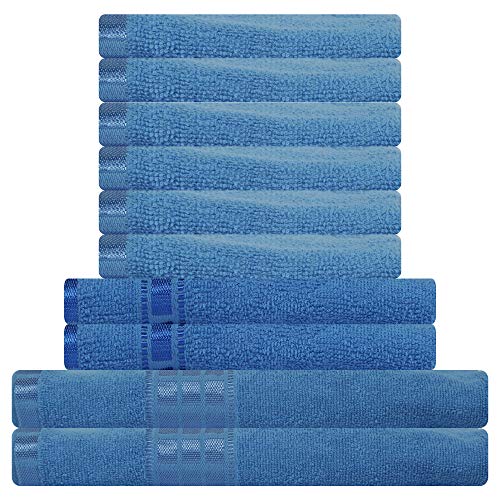 Eurospa Set Of 10 Cotton Bath + Hand + Face Towel Set Blue (Spdhfcb174Blm10)